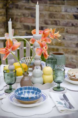 “I’d opt for placemats, candlesticks, pretty glassware, and linen napkins. These four pieces can make up the majority of a tablescape with room left to accessorise.”